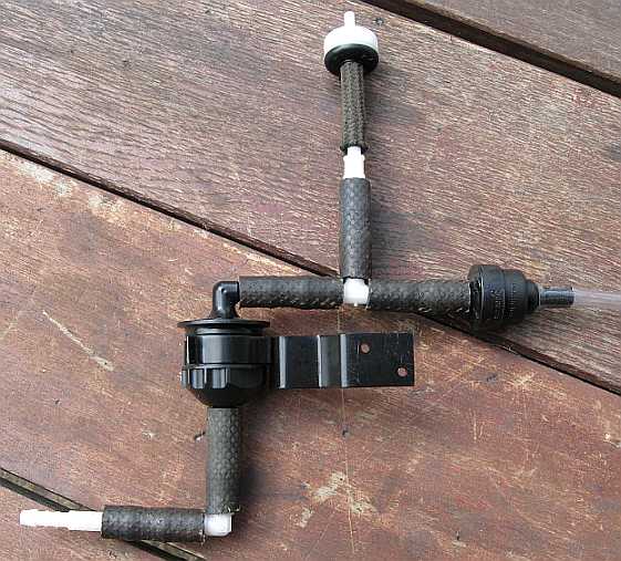 | Bei einer Neigung von etwa 40 Grad schließt das Schwerkraftventil. Leider haben die Ventile ungleiche Schlauchansschlüsse, Adapter sind notwendig. | ![]() |