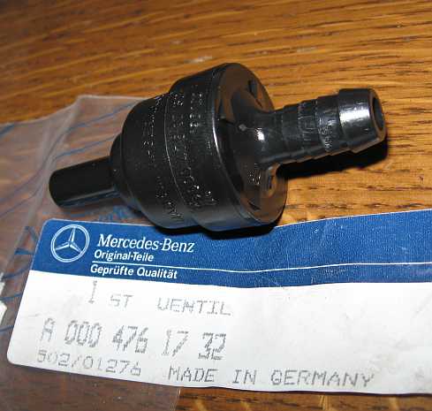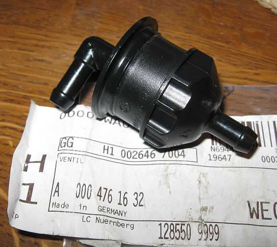 | Eingebaut sind ab Werk ein Schwerkraftventil (A0004761632 - 13,66 Euro ohne MwSt.), ein Belüftungsventil (Lufteintritt: A1238000078 - 5,82 Euro ohne MwSt.) | ![]() |