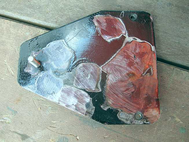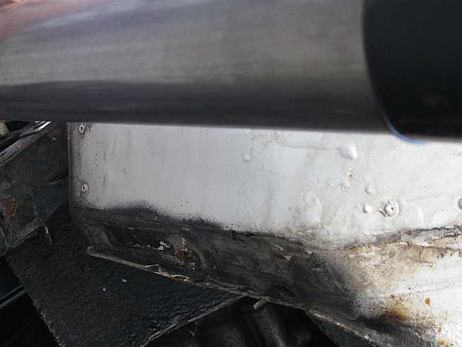 | Darunter zeigte sich, dass die Vorbesitzer die Rostlöcher großflächig mit Epoxyharz überdeckt hatten. | ![]() |
