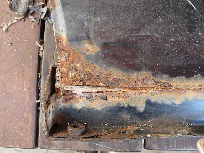 | Die verrosteten Blechteile werden mit der Flex bzw. Säge ausgeschnitten. | ![]() |