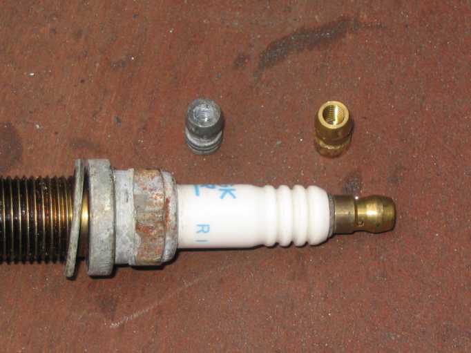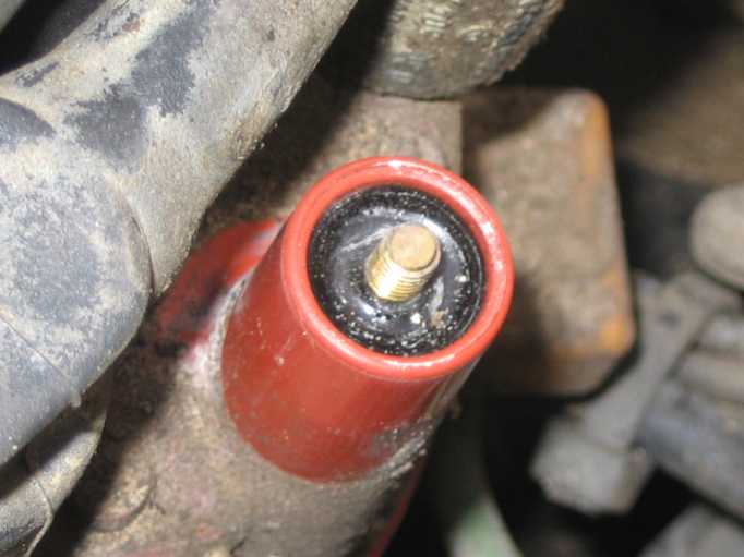 Die Steckanschlüsse für die Zündkabel am Verteilerdeckel waren korridiert. Von ausgedienten Zündkerzen passen die kleinen Messingmuffen. |