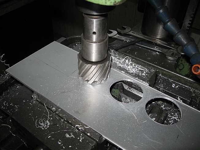 | Oben wird die Aluplatte mit zwei Blechschrauben (Sechskant) befestigt. Unten habe ich zwei Laschen / 1mm V2A-Blech) mit M4-Schrauben/Muttern befestigt. Nun kann die Aluplatte unten eingehängt und oben angeschraubt werden. |