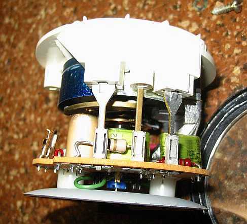 Die kleinen Birnchen sind in schwarze Kunststoffkäppchen eingebaut, die gibt es nur als Einheit. Mit einer 90 Grad-Drehung können sie aus der Platine gezogen werden. |