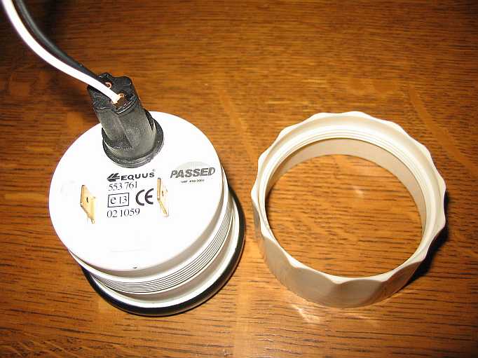 | Da der Sensor von Fa. Equus den selten verwendeten Rundstift-Anschluss hat, habe ich einen Flachsteckeranschluss aufgepresst und verlötet. | ![]() |
