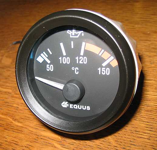 An der Verschlussschraube wird eine viel zu niedrige Öltemperatur angezeigt. Daher kommt ein zweiter Sensor oben an den Ölfilter. Mit einem Infrarotthermometer sind am Ölfiltergehäuse Temperaturen von 75 Grad im Leerlauf zu messen. Die Fa. ISA-Racing bietet den Öltemperatursensor mit M10x1-Gewinde, Nr. 5251-1-14 einzeln an. Dieser Sensor hat die gleichen Widerstandsdaten wie der von Fa. Conrad mitgelieferte Sensor, aber den normalen Kfz-Stecker-Anschluss. |