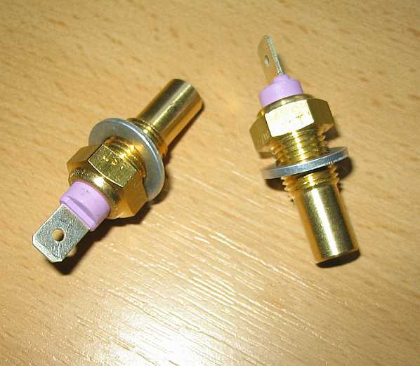 Wasser-/Ölthermometer (Conrad Electronic) mit Fühler (Gewinde: 1/8-27 NPTF): Artikel-Nr. 842109-62: 25,95 inkl. MwSt.. Der mitgelieferte Sensor B/N 842109 hat ein 1/8-27 NPTF-Gewinde. Die Toleranz der Widerstandswerte des Sensors beträgt +-5 Prozent: 50 Grad C.: 709 Ohm, 80 Grad C.: 252 Ohm, 100 Grad C.: 137,7 Ohm, 120 Grad C.: 80,1 Ohm |