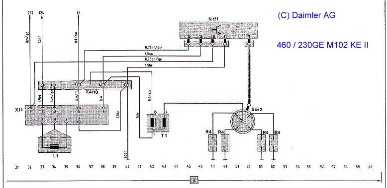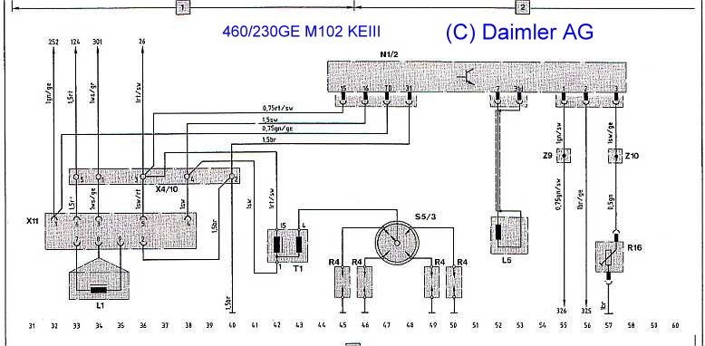 | Das TD-Signal (siehe Transistorzündung) bekommt der DZM vom Schaltgerät Transistorzündung. Er hat vier Anschlüsse: Kl. 31: Masse (1-br), Kl. 58: Beleuchtung (1-gr/gn), Kl. TD (1 -gn/ge), Kl. 15: 1-sw/blgn. Am Gehäuse ist folgender Text eingeprägt: 12V - 21000 Impulse - 6 Zyl 4 Takt - 7/80- 230/124/2. |