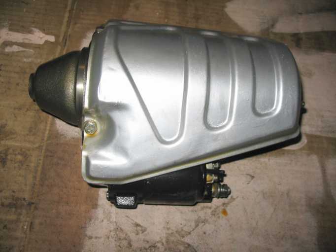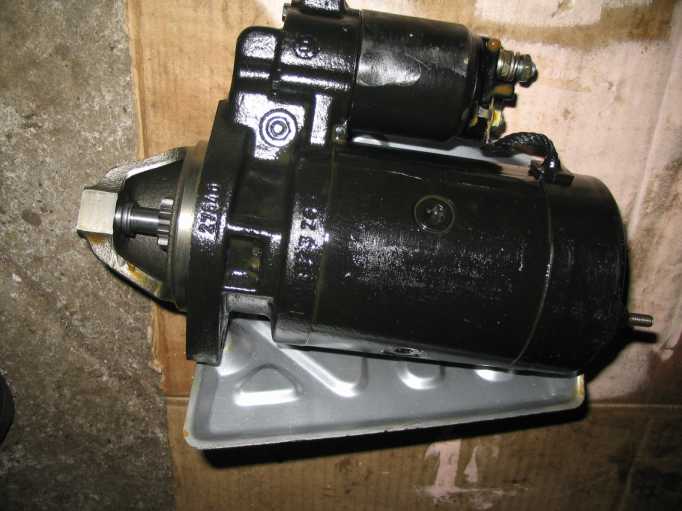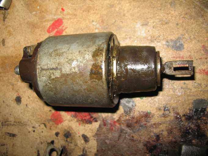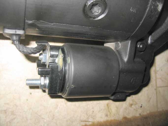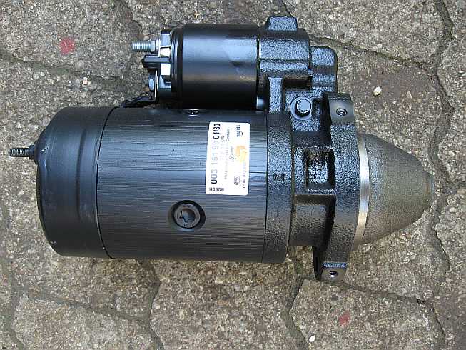 | Der neue Anlasser (Austauschaggregat) wird außen mit Wachs konserviert, aber das Ritzel und die Achse nicht gefettet, nur geölt. Durch die Hitzeentwicklung vom Krümmer (trotz Hitzeschild) würde das Fett verhärten und das Ritzel schlecht zurückgleiten. |
