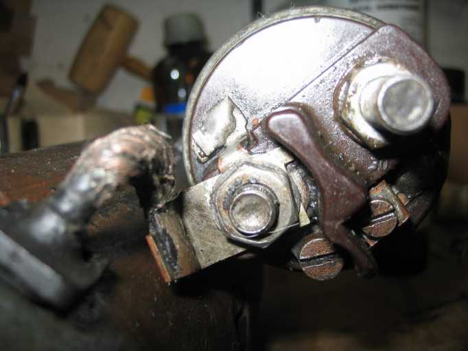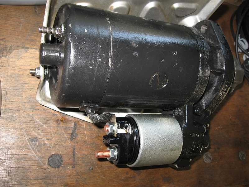 | Angeschraubt wird es natürlich mit 2 M6-V2A-Schrauben bzw. V2A-Mutter und Sicherungsring sowie mit V2A-Beilegscheibe zwischen Anlasser und Blech. | ![]() |