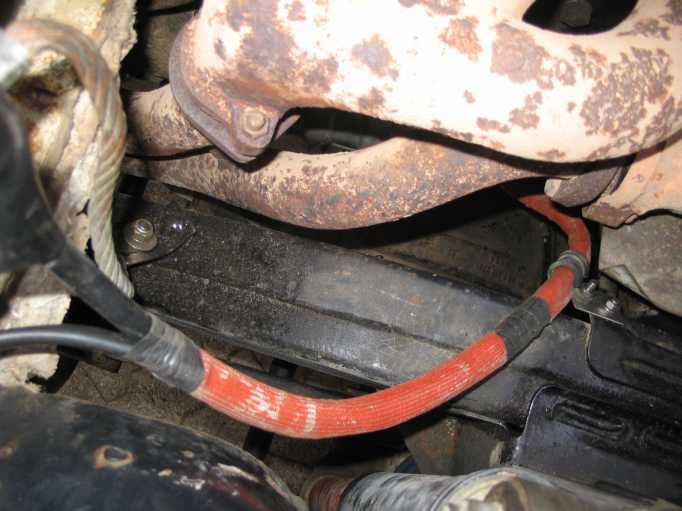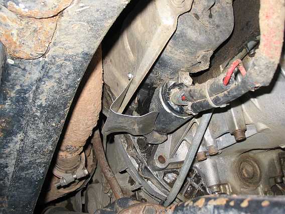 | Man glaubt es kaum, aber bei der Hobby der Transilvania-Tropy TAT2010 hat die Kardanwelle/vorderes Gelenk das Hitzschutz-Blech des Magnetschalters am Anlasser verbogen/eingedrückt. Obwohl ich die längeren originalen Anschlagdämpfer am Federdom der Vorderfedern eingebaut hatte, federte die Vorderachse soweit durch. Anscheind sind die Stoßdämpfer/Federn zu weich. Allgemein hört man, dass die Hobby in Richtung Extrem mutierte (siehe auch die website von Rebeca, ROCO4x4.COM). | ![]() |