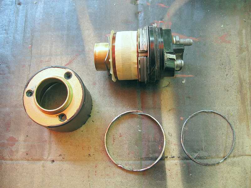 | Nun habe ich den defekten Magnetschalter A0001523610 mit der Flex (1 mm-Scheibe) aufgeschnitten. Zuerst habe ich die Bördelung abgetrennt, dann einen etwa 5 mm breiten Ring. | ![]() |