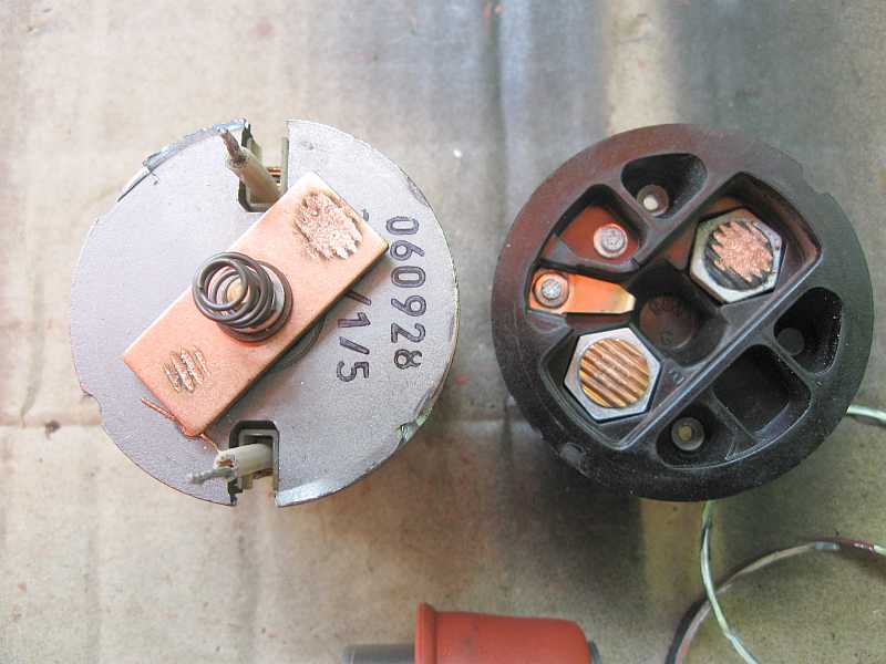 | Beim Zerlegen des Anlassers war klar, ein Austauschanlasser ist für die nächsten Jahre die bessere Wahl. Probeweise ölte ich mal die beweglichen Teile. Vor allen Dingen gefiel mir der Kollektor des Motors nicht. Auch die Gleitlager des Motors waren verschlissen. Zum Fotographieren zerlegte ich den Anlasser dann nochmal ;), bevor er zu Mercedes im Austausch kam. |