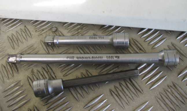 | Für die untere Inbusschraube am Anlasser verwende ich die folgende Werkzeugkombination: kurze Inbus-Stecknuss Hazet 985, Gelenkstück, 57 cm lange Verlängerung Hazet 918-23, Ratsche. | ![]() |