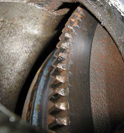 | Der Zahnkranz am Motor wies zunächst keine Schäden auf. Beim 2. Anlassertausch zeigte sich doch ein beschädigter Zahnreihenabschnitt. | ![]() |