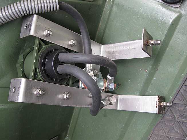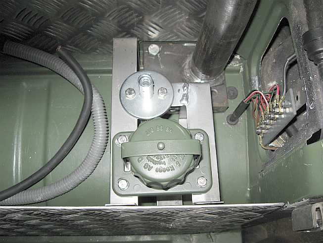 Auch beim 280GE habe ich bei der Zweitbatterie eine Natosteckdose mit Batterietrennschalter eingebaut. Für die Halterung verwendete ich 3 mm dicke V2A-Streifen. Siehe auch den Einbau beim G55AMG im Tipp 45, Abschnitt 3.3 . |