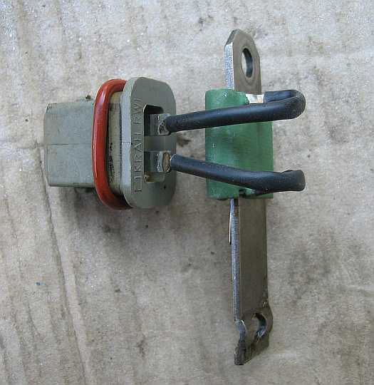 | Der Stecker (Kupplung) A 116 540 0181 - 9,84 Euro ohne MwSt. ist der gleiche wie beim Kaltstartventil. Er hat die Einsätze A 003 540 02 26 - Euro ohne MwSt.. Zum Messen habe ich mir einen Adapter gebaut (passt auch ans Kaltstartventil). Die Halteklammer am Teststecker habe ich entfernt. | ![]() |