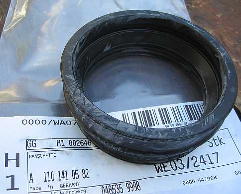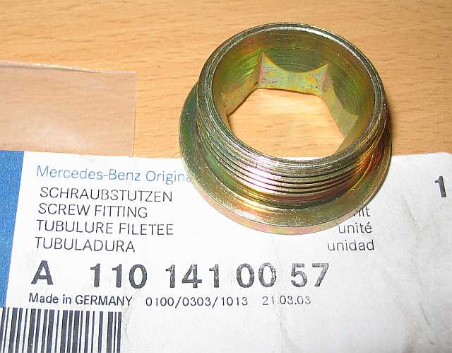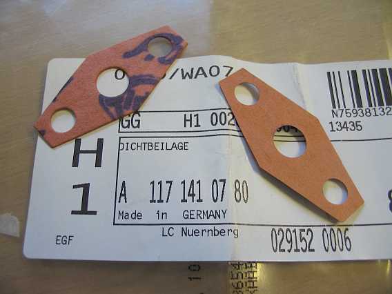 | Später wurde eine längere Leitung A110-070-3732 - 99,79 Euro ohne MwSt. mit dem gleichen Tecalaneinsatz eingebaut, der Druckdämpfer A000-078-0592 entfiel, da die längere Leitung genügend dämpft. |