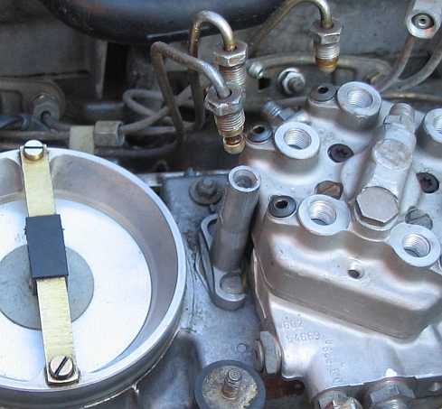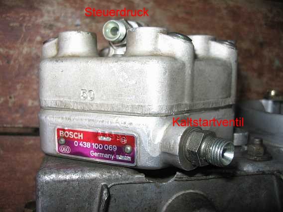 Jedem Zylinder ist im Leichtmetall-Mengenteiler ein Steuerschlitz mit einem Differenzdruckventil zugeordnet. Die Flachsitzventile mit einer federbelasteten Membran (Federkraft bestimmt 0,1 bar Differenzdruck) sitzen unter den Schraubstutzen der Einspritzleitungen. Unter den schwarzen Inbus-Schrauben (Sechskant-Einsatz 9/64) auf der Oberseite des Mengenteilers sind die Einstellschrauben für die Differenzventile erreichbar. Es gibt spezielle Differenzdruckmanometer mit zwei Anschlüssen, z.B. der Typ MSD110000000, 100 mm, 0-1 bar Anzeige, Skalenteilung 0,02 bar, 101, 30 Euro inkl. MwSt.. |