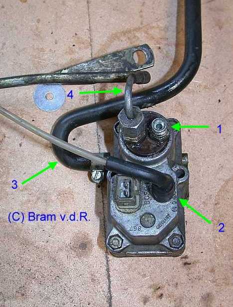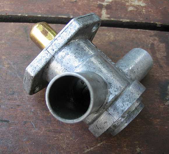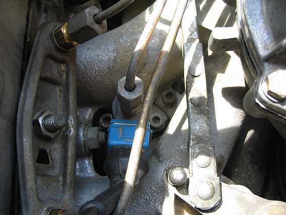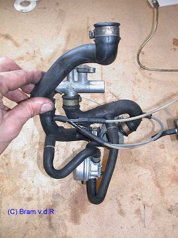 | Der schmale Anschluss dient zur Entlüftung (Leckleitung) und ist über einen Kunststoffschlauch mit dem Y-Verteiler am Bypass vor dem Leerlaufluftverteiler verbunden. | ![]() |