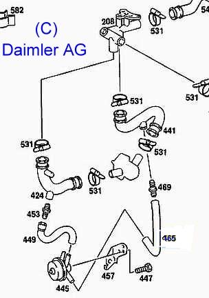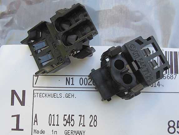 | Neben dem Thermozeitschalter sitzt der Temperaturfühler für die Anzeige der Kühlwassertemperatur: Steckergehäuse 1-polig: A0115458528, 4 mm Rundkontakt A0035452626 | ![]() |