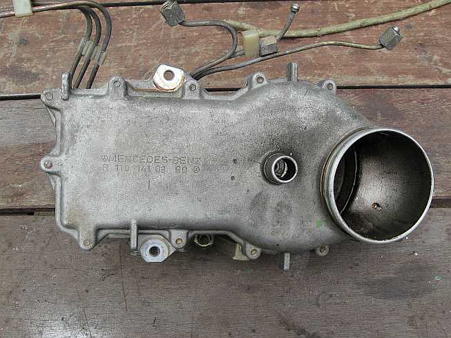 | Dieses Schubumluftventil war z.B. auch beim 350SLC, Baureihe 107.023, Motor M116.984 verbaut. Solche Schubumluftventile sind meistens bei Motoren mit Turbolader verbaut, z.B. auch beim Audi. Da ist es aus Kunststoff, kostet nur 23 Euro und wird durch die Motorhitze oft defekt. Deswegen gibt es von der Fa. Abt einen Umbausatz dafür. Da ist die Mercedeslösung besser und letztlich preiswerter. |