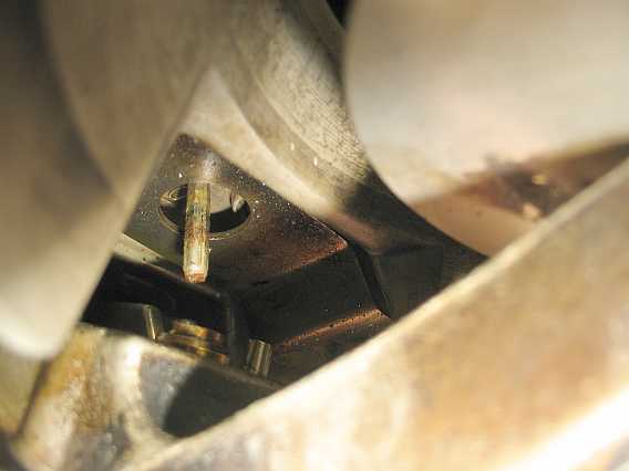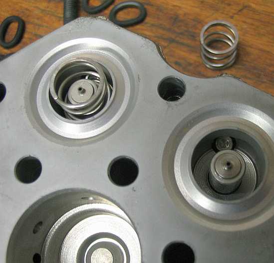 | In den Bildern sieht man die Federn, die Druckscheiben und die Ventildüsen, die über einen Filter mit den Einspritzleitungen in Verbindung stehen. Auch das Ende der Einstellschraube ist erkennbar. | ![]() |