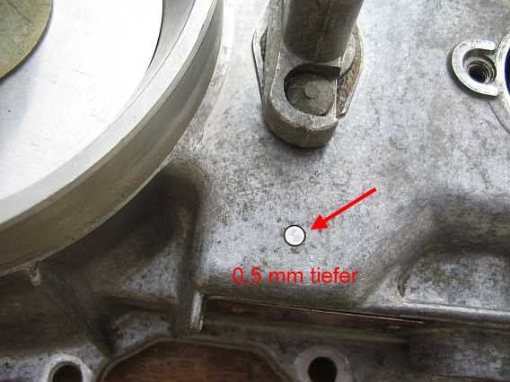 | Das Anlageblech für den Stauscheibenanschlag wird durch Einschlagen des Dorns um 0,5 mm tiefer gesetzt (siehe 3. Bild). Die Stauscheibe hat dann die richtige Lage. | ![]() |