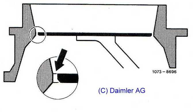 Als Dichtung wird die blaue Spezial-Dichtmasse A0019892520 (80ml) - 13,04 Euro ohne MwSt. verwendet, die aber nur begrenzt lagerfähig ist und dann hart wird. Auf die entfetteten Dichtflächen wird die Dichtmasse gleichmäßig dünn aufgetragen. Die Teile nach mindestens 10 Minuten Wartezeit (oder länger) zusammenfügen und die Schraubverbindungen mit dem jeweiligen Drehmoment anziehen. |