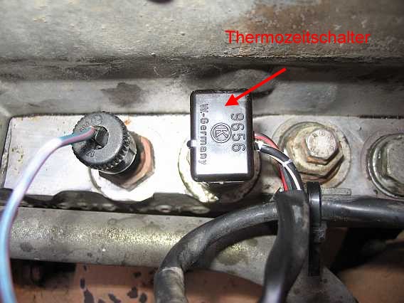 Kaltstartventils. Der Thermozeitschalter ist seitlich am Motor
