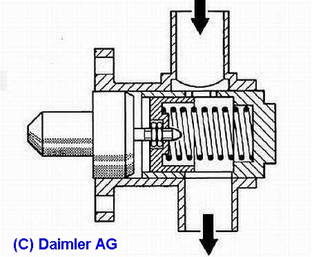 Druckausgleichsventil (Leichtmetall), laut EPC-Net: A0000740713, sitzt neben dem Luftmengenmesser. Der Mercedes-Nr. entspricht die Bosch-Nr. 0438100054 (Ersatztyp für 0.438100069), ersetzt durch F026-TX2-024. In meinem 280GE ist ein Leichtmetall-Mengenteiler Bosch-Nr. 0438100069 mit Druckausgleichventil eingebaut.