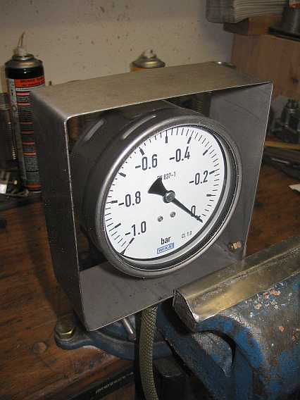 Zur Messung des Unterdrucks bei der Verstellung des Zündzeitpunktes und des Saugrohrunterdrucks bei der KA-Jetronic wird ein genaues Manometer benötigt. Bei der Fa. ESSKA gibt es im Shop die Manometer. Geeignet ist das Manometer MS-1 100C R000, Anschluss G, 1/2 Zoll B, unten, Skalenteilung 0,02 bar, Anzeigebereich -1 bis 0 bar, 100 mm Durchmesser, 64,60 Euro ohne MwSt..