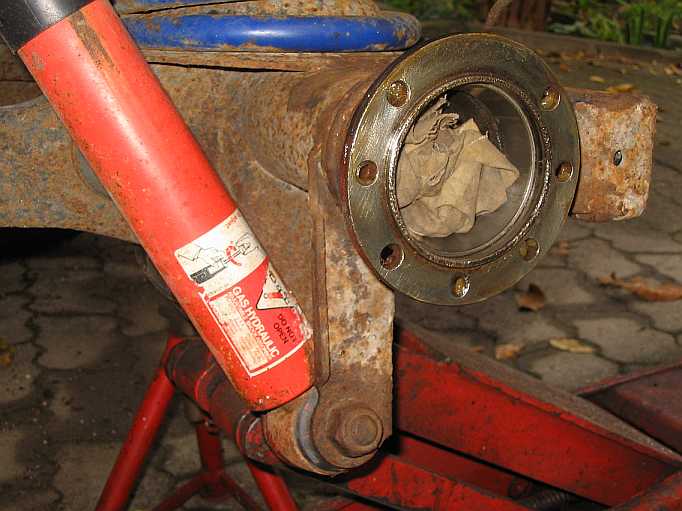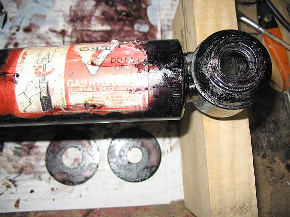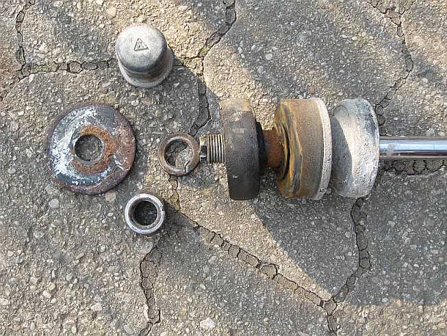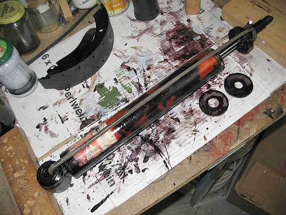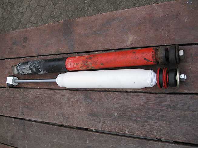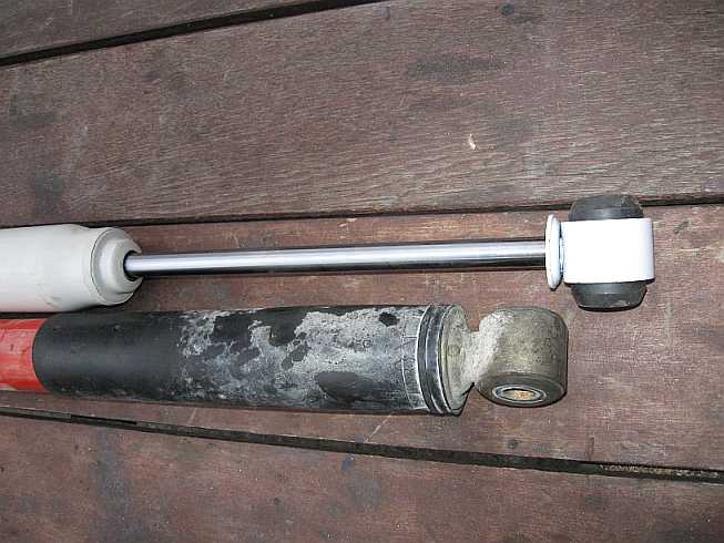 | Leider taugen die Gummischutzhüllen wenig, sie sind nun von der Kolbenstange durchgescheuert. Auch die Gummiteile oben an den vorderen Stossdämpfern sind nach zwei Jahren geschädigt. | ![]() |