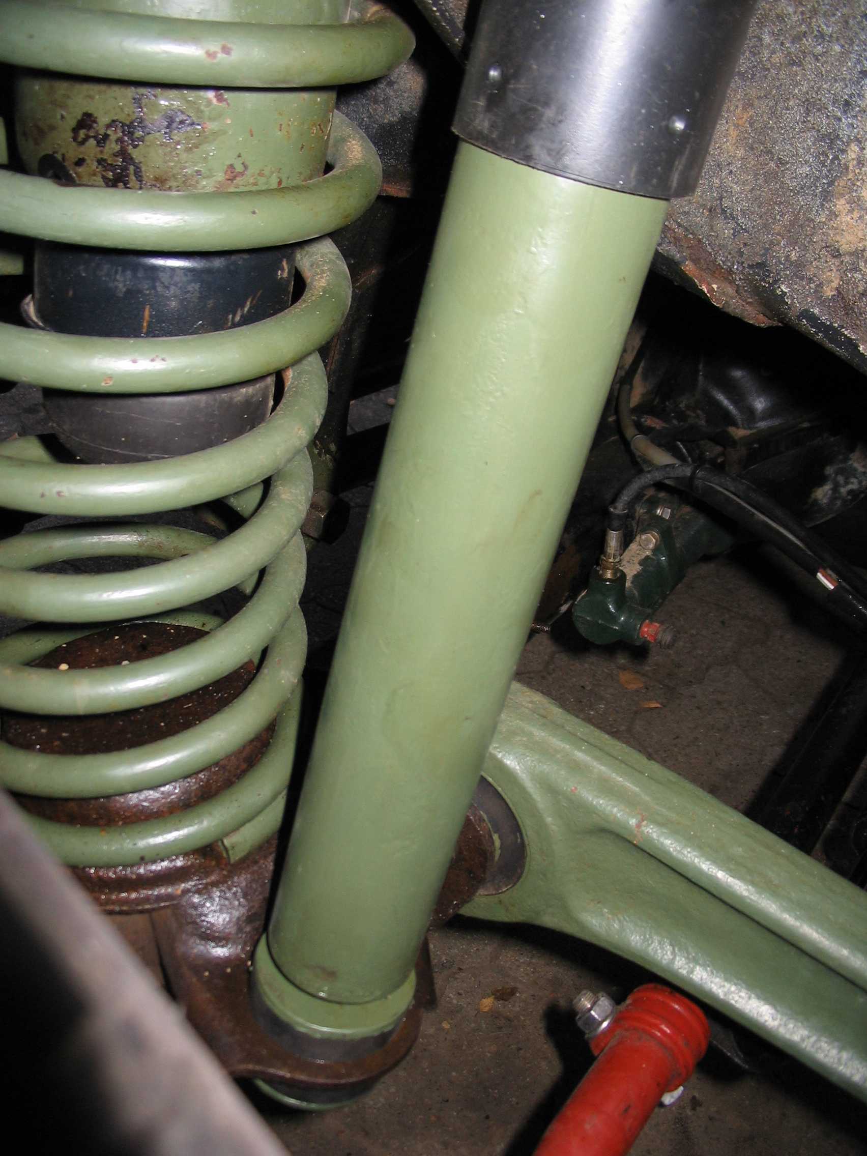 | Die weiße Farbe wurde direkt ohne Grundierung auf das Blech des Stoßdämpfers gespritzt. Da ist ein weiterer Schutzanstrich empfehlenswert. Vor dem Einbau sollten die Dämpfer an den Schweißstellen zusätzlich mit Wachs konserviert werden. Viele Einzelheiten und Bilder zu den serienmäßigen Stoßdämpfern sind im Tipp Nr.49: Stoßdämpfer 460/463 enthalten. | ![]() |