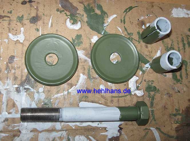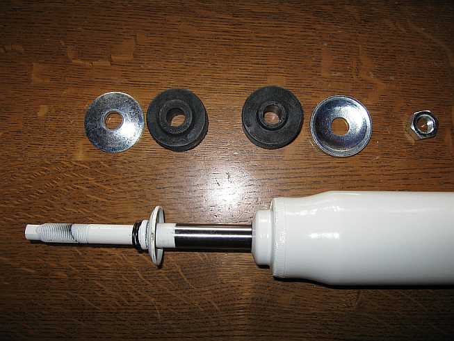 | Die Befestigungsteile für die Schraubbolzen der Stoßdämpfer sind für die großen Löcher der Aufnahmen am Rahmen zu klein. (siehe Tipp Nr. 49 Aufbauteile) | ![]() |