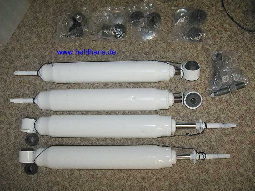 | Bei der "Zivilisierung" des Trophy-280GE nach der TAT2010 werden die zu weichen PROCOMP-Stoßdämpfer durch die vorher eingebauten Koni Heavy Track - Stoßdämpfer ersetzt. |