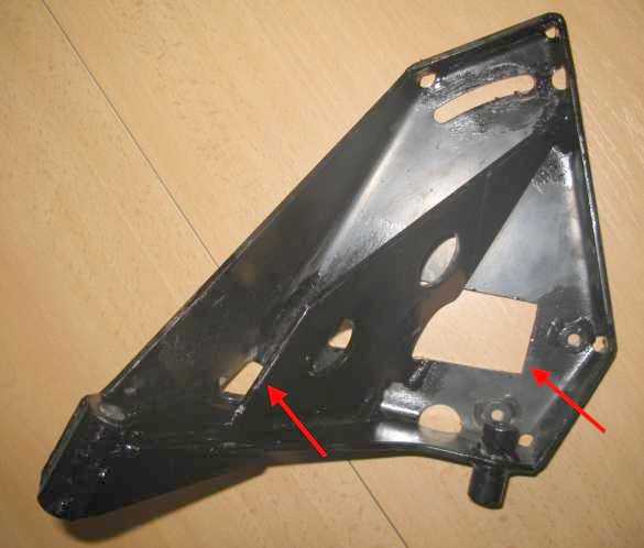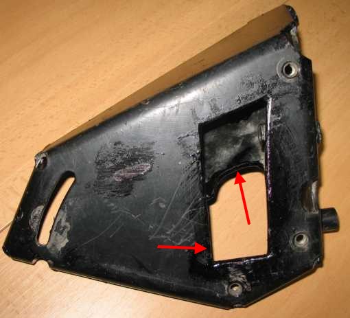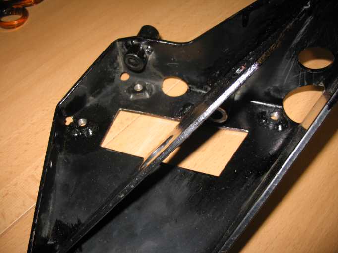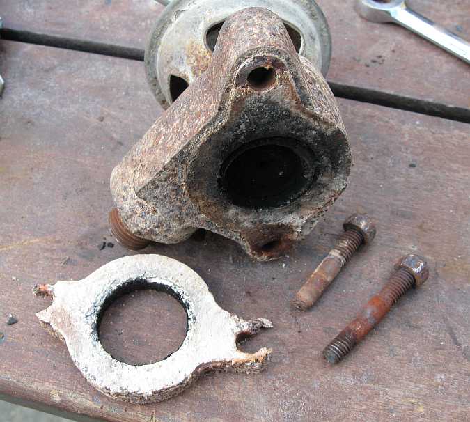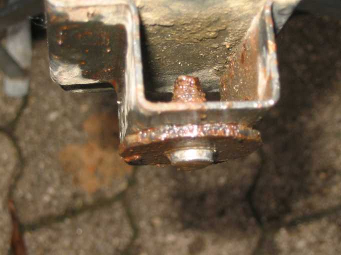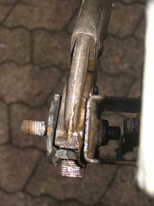 | Ein M6-Stehbolzen war schon angerostet und riss natürlich ab. Den Gewinderest habe ich stufenweise mit 3, 4 und 4,5mm-Bohrer ausgebohrt und herausgehebelt, dann das Gewinde nachgeschnitten. | ![]() |
