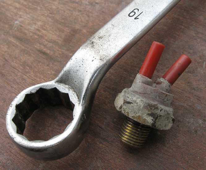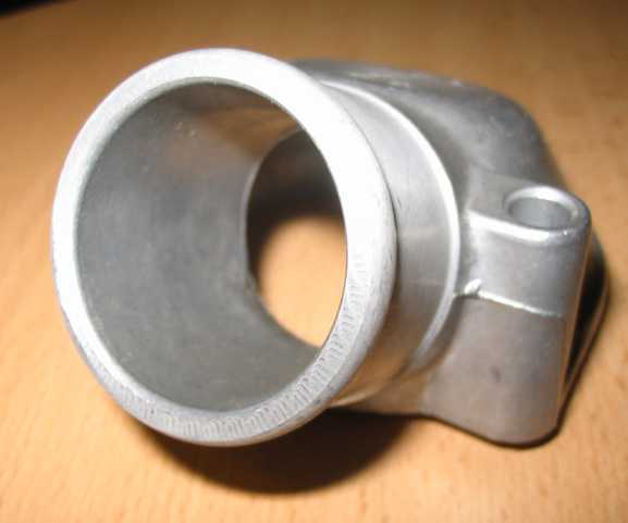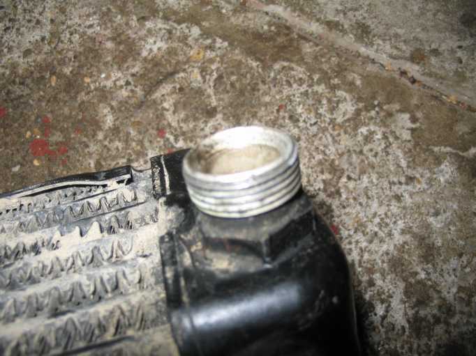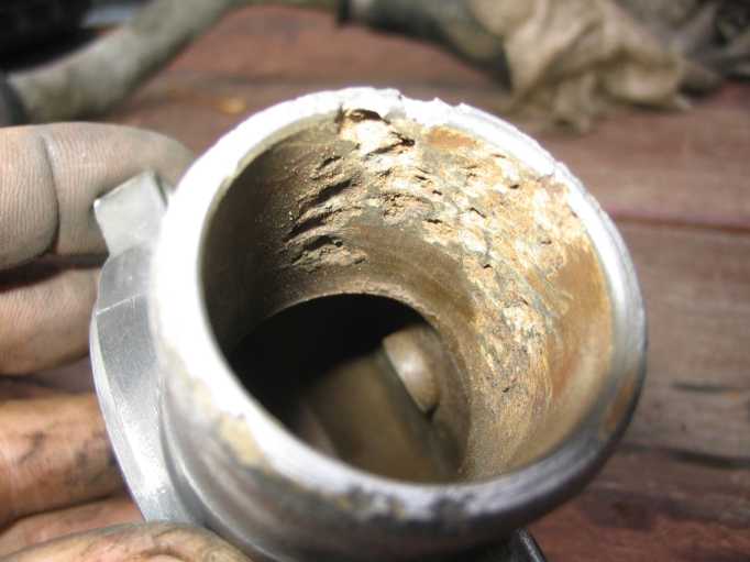 Das Oberteil des Thermostatgehäuses zeigt am Anschlussstutzen schon Innenkorrosion/Lochfraß, wäre aber noch genügend stabil. |