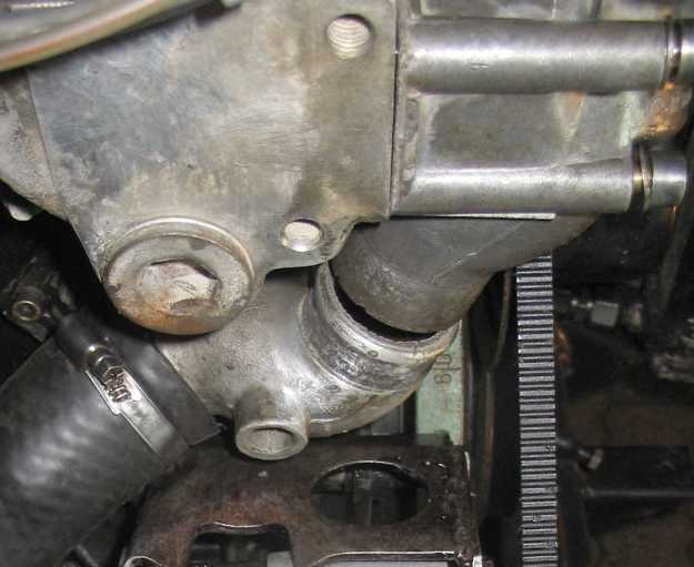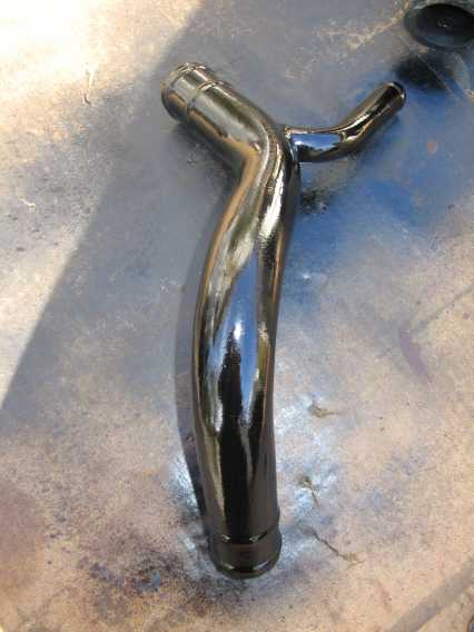 | Der Verbindungsschlauch N900271042012 zwischen Wasserpumpe und Thermostat - 43 mm lang, ist auch nicht mehr der beste. Das Rohrstück ist neu lackiert. | ![]() |