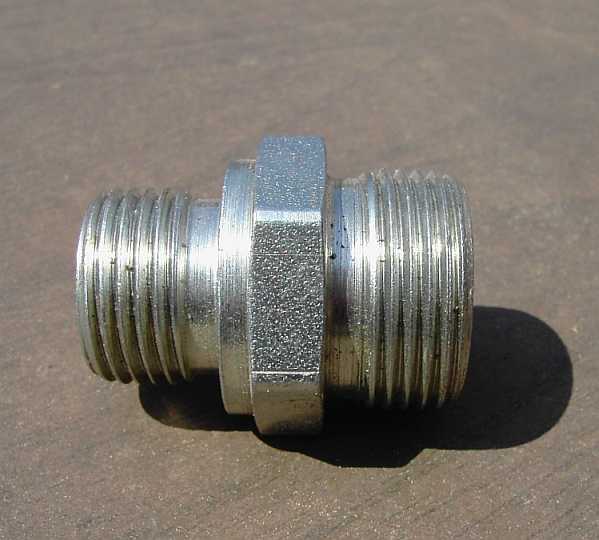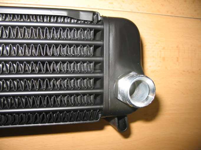 Bei der Fa. Hytec-Hydraulik gibt es die sog. "gerade Einschraubverbindung (metrisch)" nach DIN 2353 mit Schneidring in den Bauformen PL 6-18 mm, 315 bar, 22-42 und PS 6 -14 mm, 630 bar, 16-30 mm 315 bar. Von N. Sollner sind der Tipp und die Reparaturbilder des Anschlusses (Herzlichen Dank, Norbert). Sein Reparaturtipp: Einen Druckluft-Anschluß mit Ermeto Überwurfmutter M 22x1,5 für die intakte Seite bauen, um bei allen später anstehenden mechanischen Bearbeitungen zu gewährleisten, daß keine Späne in den Kühler gelangen. Achtung! Dann unbedingt eine Schutzbrille tragen! Zur Verwendung kommt ein Ermeto Einschraubstutzen von 12 L auf 15 L mit umlaufender Schneidkante. Also eine Gewinde-Größe M 18x1,5 auf M22x1,5. Die umlaufende Schneidkante ( Dichtkante ) befindet sich auf der 12 L Seite. Das defekte Gewinde wird bündig am unteren Ende abgesägt, und plan gefeilt. Die vorhandene Bohrung auf 16,5 mm erweitern.... ( ..Kernlochbohrung für M18x1,5 ), und mit einem Kegelsenker leicht anfasen, dann greift der Gewindeschneider besser. Neues Gewinde M 18 x 1,5 einschneiden. Den Stutzen eindrehen bis die Kante ganz leicht in das Aluminium schneidet. Da die Fläche vermutlich nicht sauber rechtwinklig zur Bohrung ist, muß hier noch nachgearbeitet werden. Die Stellen, an denen die Schneidkante schon eingeschnitten hat, mit der Feile noch etwas weiter schlichten. Wenn es denn sauber paßt und die Kante rundum gleichmäßig einschneidet, den Stutzen letztendlich ( ..mit Loctite ) eindrehen, aber bitte mit sehr viel Gefühl! Das Alu im Kühler ist schnell überdreht. Zum Test hab ich den Kühler dann einseitig mit einem M 22x1,5-Verschluß abgeschlossen und mit 5 Bar Druck beaufschlagt. |
