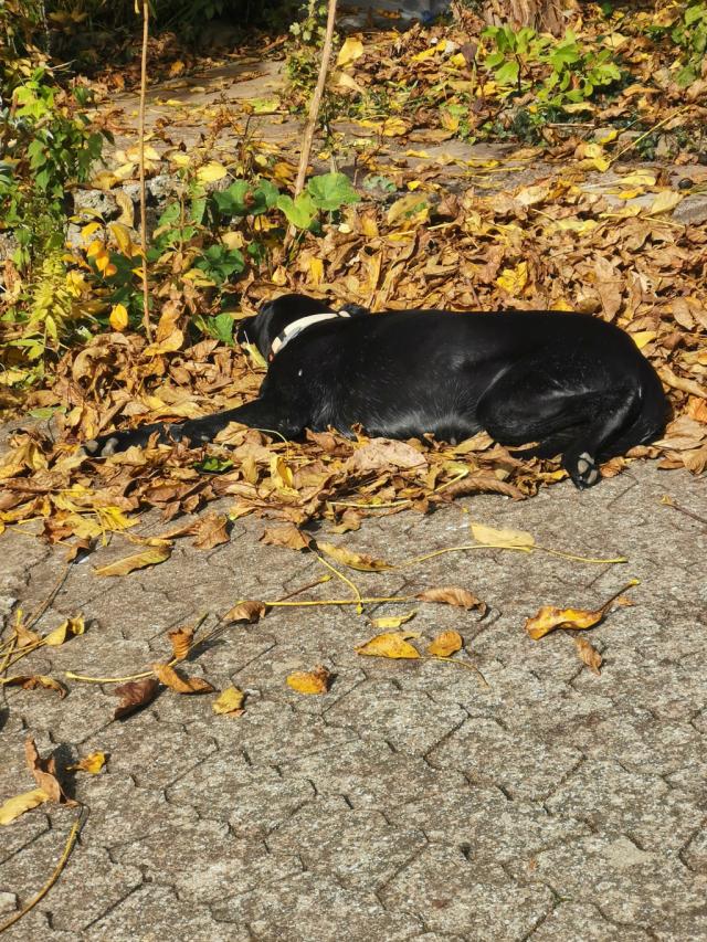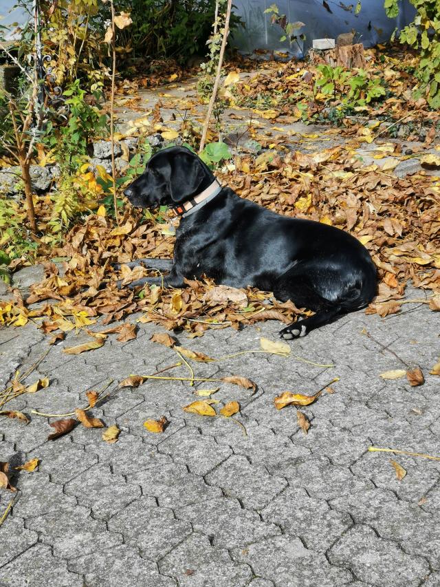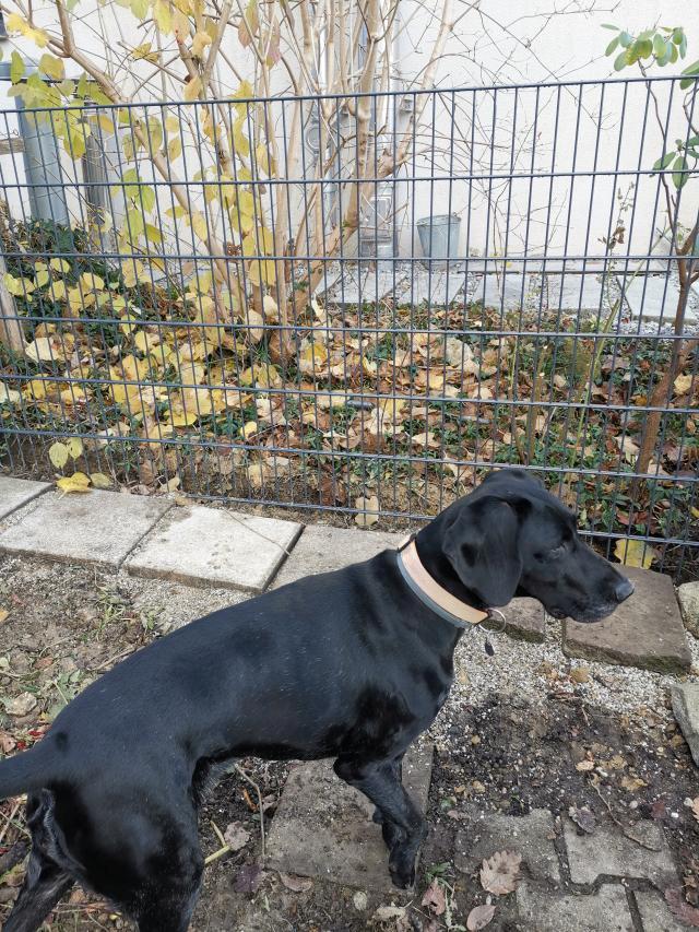 Am 10.11.2025 fotografierte ich den am 3. Tag 05.11.25 neuverlegten Plattenweg am Zaun. Jessy benützt ihn auf ihren Kontrollgängen. |