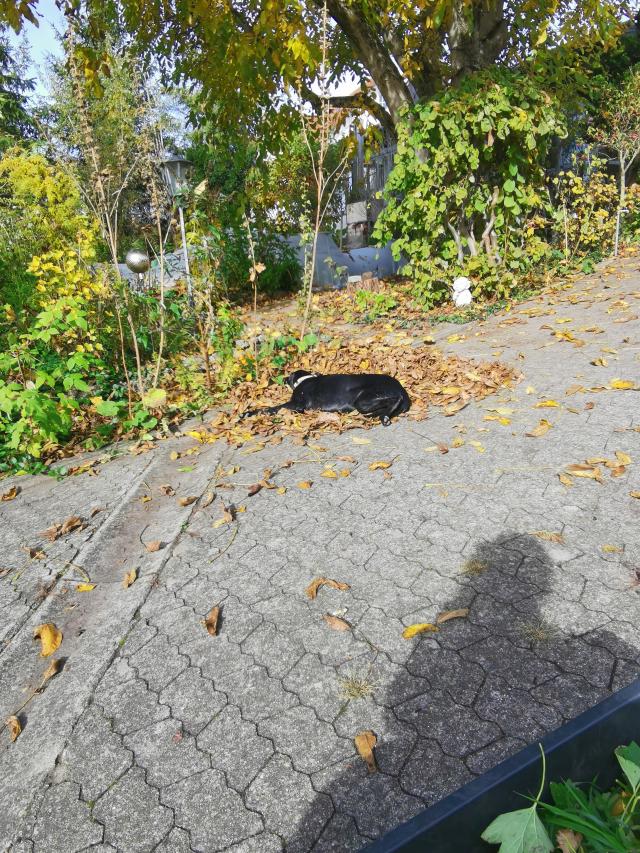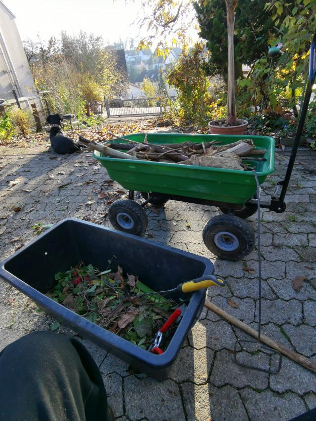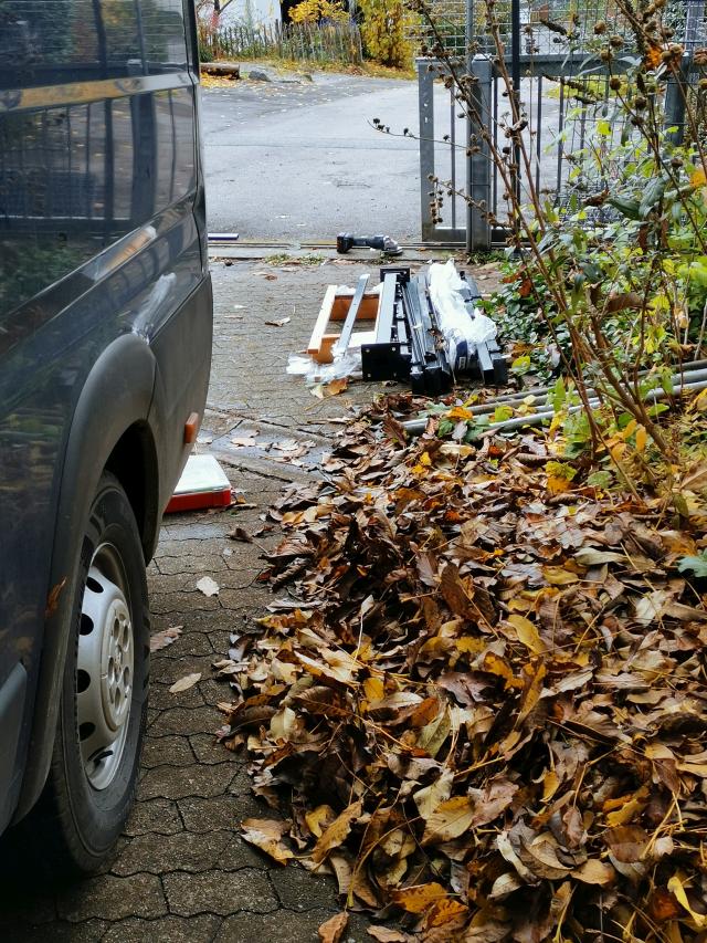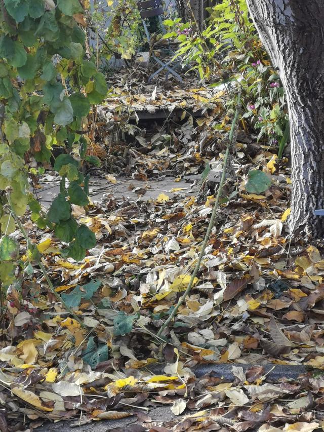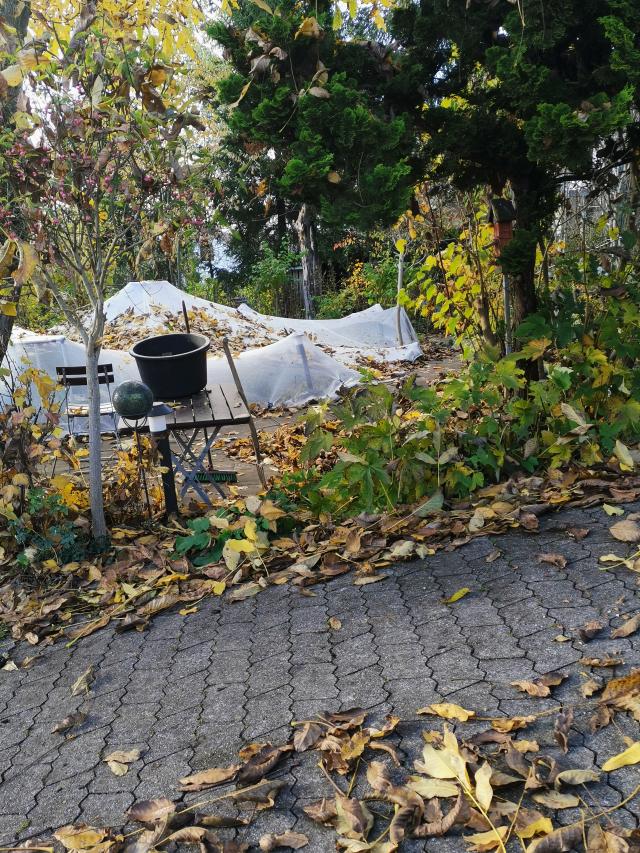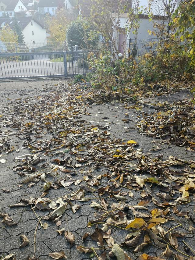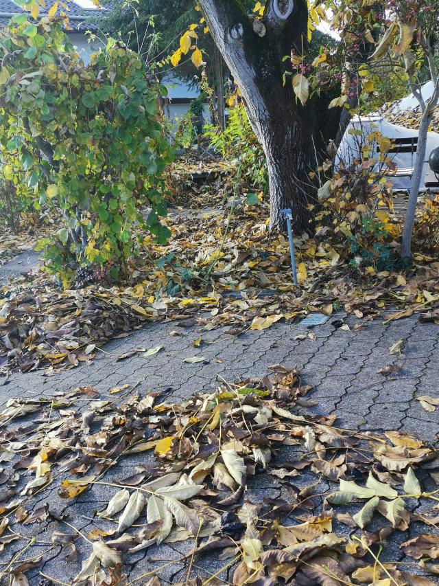 Wie jedes Jahr immense Mengen Laub vom Nussbaum, obwohl er ja voriges Jahr zurück geschnitten wurde. |
