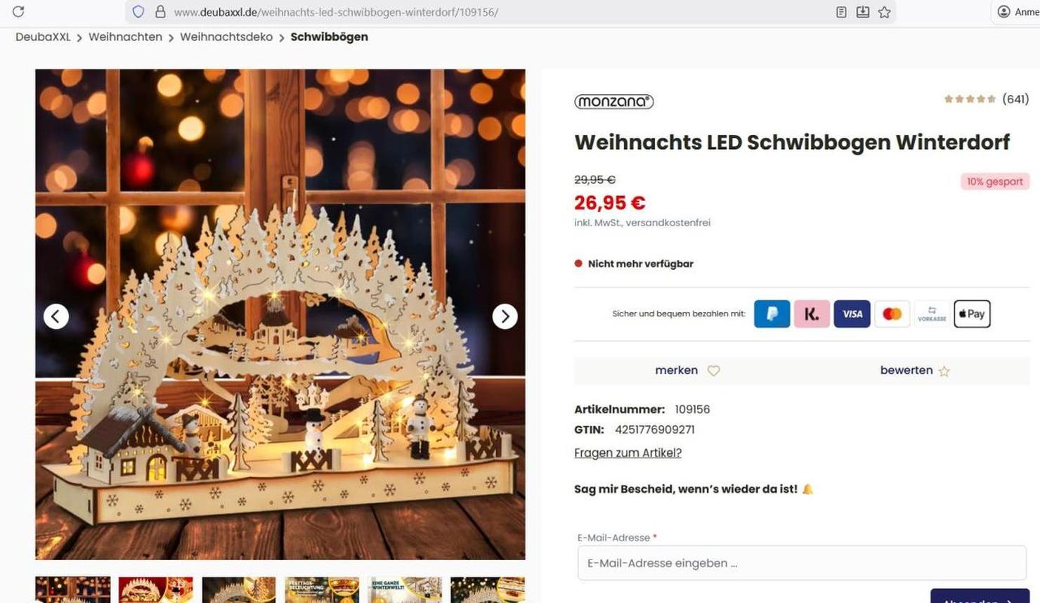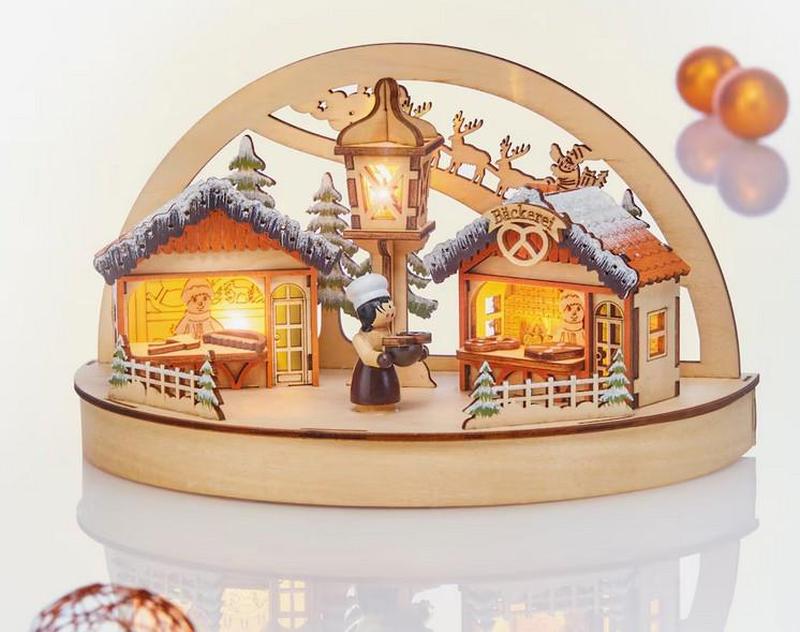 Die Deko links hatte ich schon. Von Fa. Otto gab es eine kleine Deko "Backstube" im Sonderangebot, die mir gefiel (Deko in der Mitte). Den rechten Schwippbogen Winterdorf kaufte ich von Fa. Deubaxxl.de Monzana Weihnachts Schwibbogen Modell GHSBW03 - Nr. 109156 für 29.95 €. |