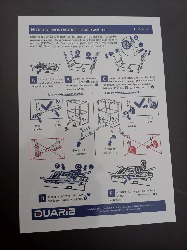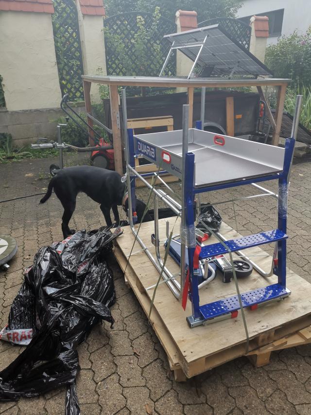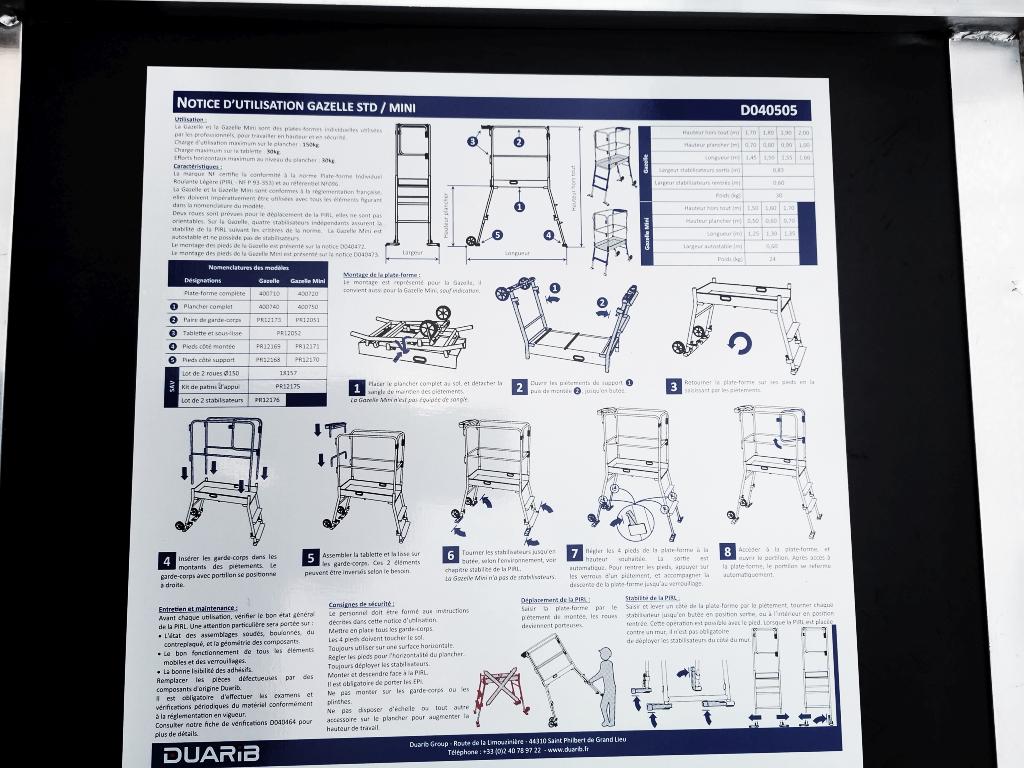 Auf der Unterseite der Arbeitsbühne sind zwei Aufkleber in Französisch. Ich habe mich bei Matisere beschwert, warum die nicht auf Deutsch sind. Bekomme ich zugeschickt. |
