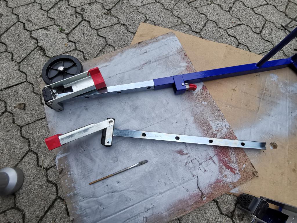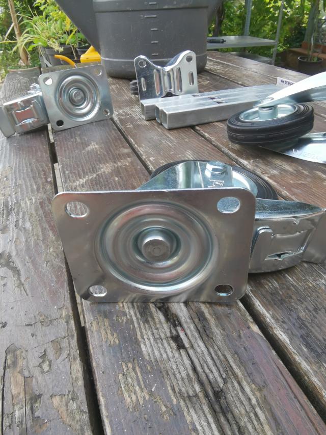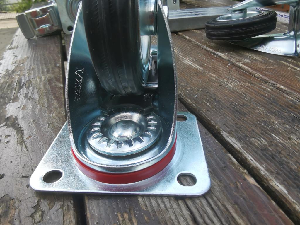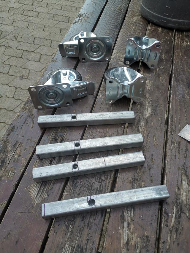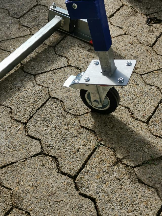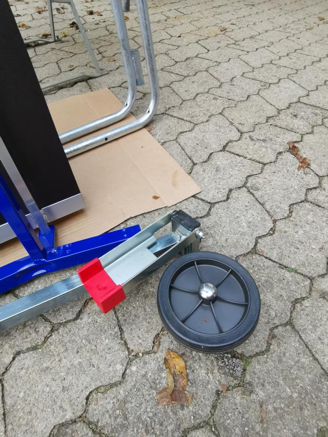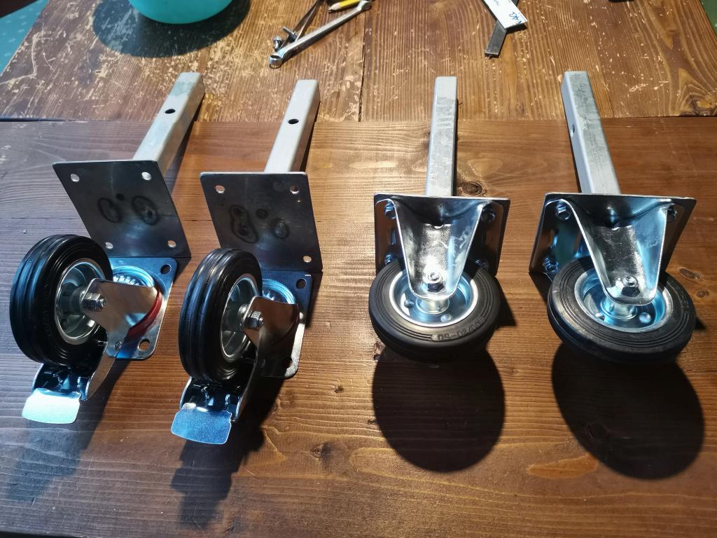 Die Lenkrollen stehen nicht waagrecht und verändern beim Drehen die Höhe, da die Beine schräg stehen. So ist der Schwenkradius sehr eingeschränkt und ich musste einen Knick einbauen, damit die Lenkrolle waagrecht steht. |