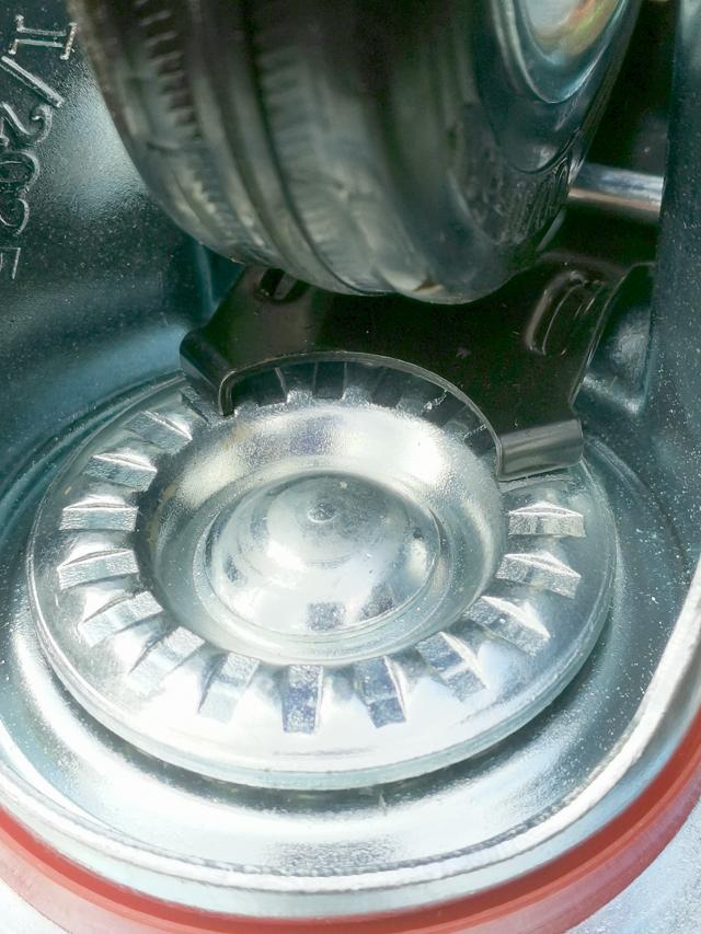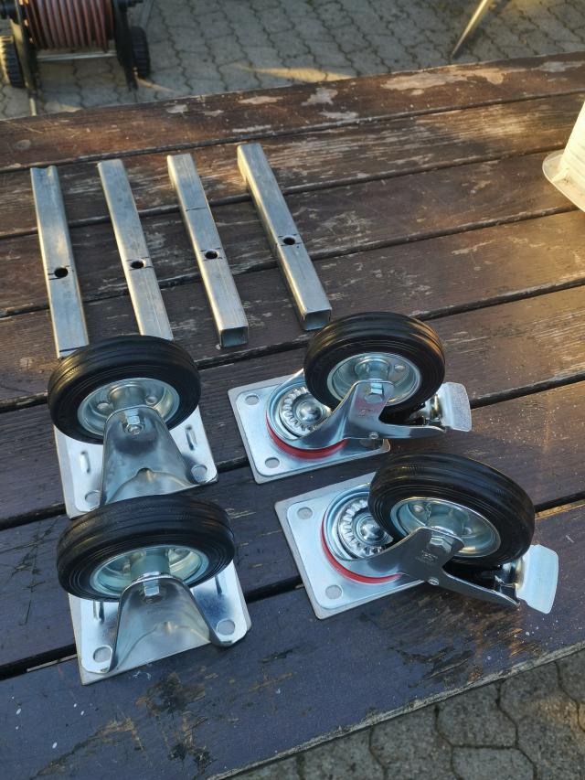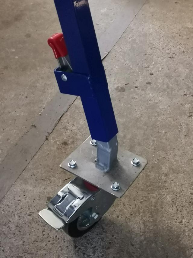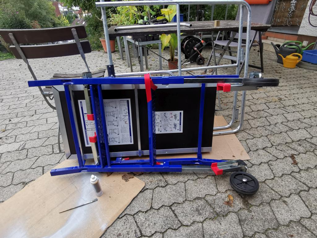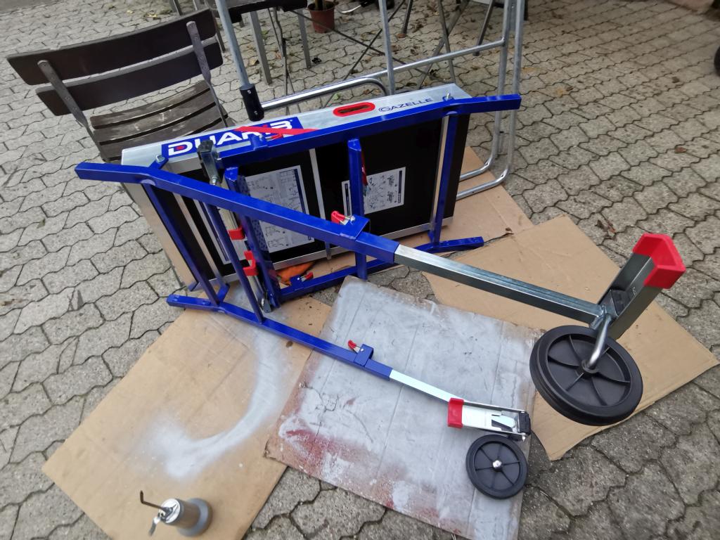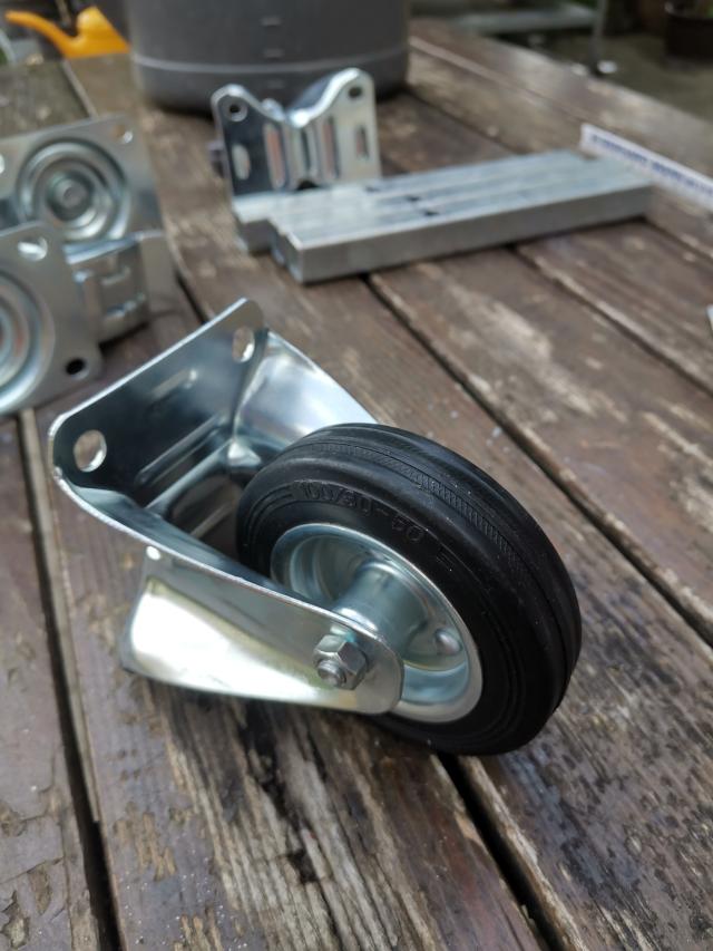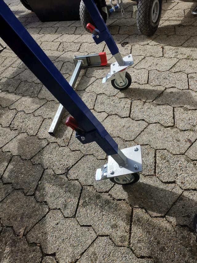 Die Lenkrollen stehen nicht waagrecht und verändern beim Drehen die Höhe, da die Beine schräg stehen. So ist der Schwenkradius sehr eingeschränkt und ich musste einen Knick einbauen, damit die Lenkrolle waagrecht steht. |