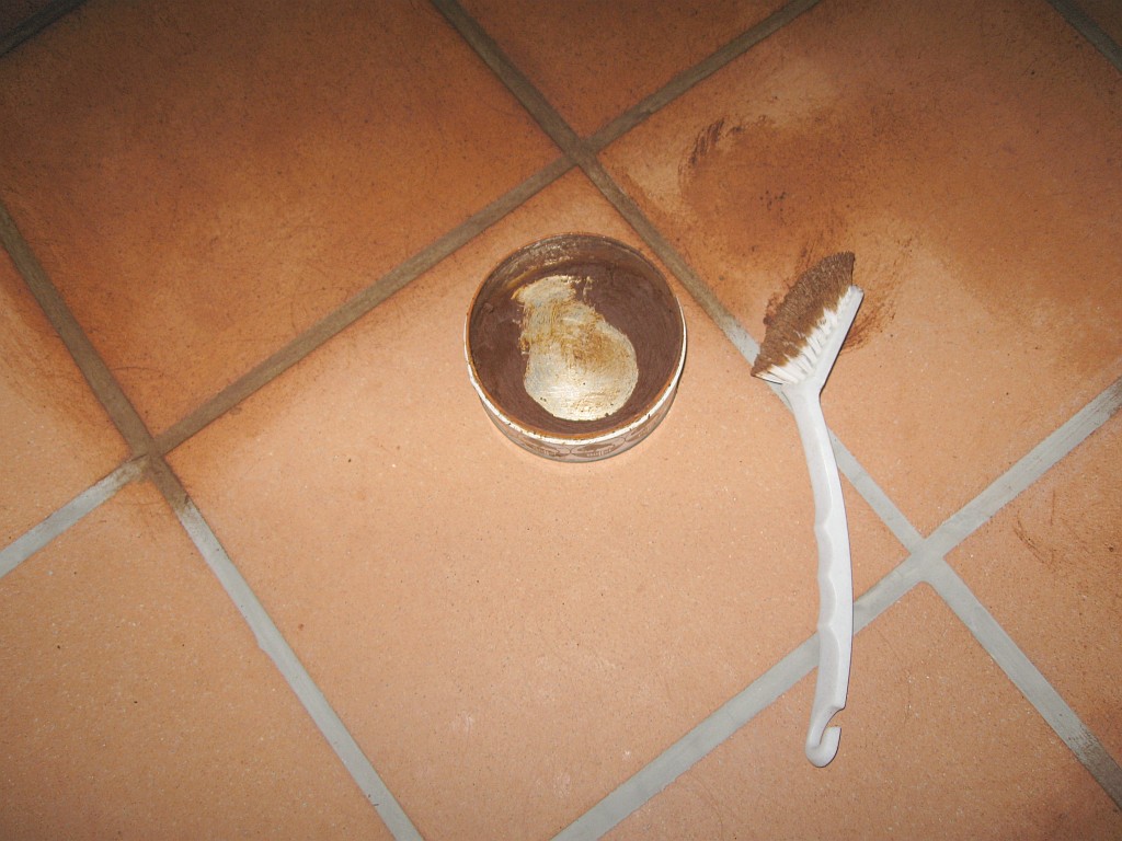 Der letzte Teil ist verfugt und mit Zementschleier-Entferner abgewaschen. Morgen wird nun der Rest noch gewachst. |