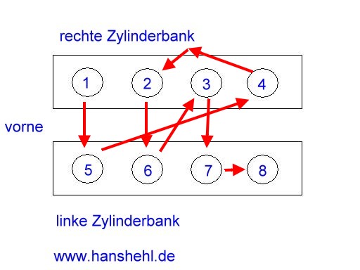 Einzelheiten zur Zündung findet man auch bei Wikipedia: Zitat: Die Doppelzündung arbeitet mit zeitversetzter Ansteuerung der beiden Kerzen. Dadurch erreicht man eine schnelle und gleichmäßige Verbrennung, größere Sicherheit vor Verbrennungsaussetzern und höhere Toleranz gegen Gemischabmagerung und Abgasrückführung. Da durch die Doppelzündung die Wärmebelastung des Kolbens steigt, wird dieser durch Ölspritzdüsen gekühlt, die Motoröl von unten gegen den Kolbenboden spritzen. Die Kerzen in jedem Brennraum werden bei manchen Herstellern (nicht bei M113 Mercedes) außerdem von einem Arbeitstakt zum nächsten in abwechselnder Reihenfolge angesteuert. Das ergibt eine gleichmäßigere und niedrigere Wärmebelastung des Kolbens und gleichmäßigen Abbrand beider Kerzen. |