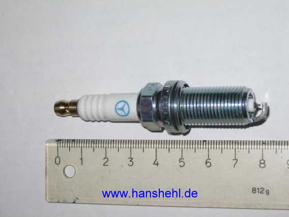 Die Mercedes-Zündkerze A0041591303, ILFR6A-8, Hersteller-Nr. NKG-3588 hat ein langes M14x1-Gewinde (Anzugsdrehmoment 28 Nm). Folgende Kennzeichnungen sind noch eingeprägt: H730, JAPAN, NGKR. Sie ist entstört: Ri = 1,36 KOhm, SW 16,0 Gewindelänge: 26,5 mm, 0,8 mm Elektrodenabstand. siehe ngkntk.com/de/produktfinder/ Dort findet man auch die Codierung der Zündkerzenbezeichnung wie z.B. ILFRA6, als Pdf hier abgelegt. |