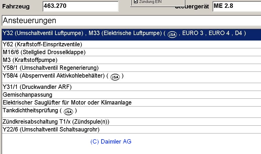 Mit der Diagnose können je nach Beanstandungen, z.B. Zündaussetzer KAT-schädigend, geführte Prüfungen durchgeführt werden, siehe eigener Bericht. Dazu gab es früher eine Primär-Adapterleitung, siehe: DH0C00-P-M000-39X von Fa. Hermann Elektronic: Bosch Mot250 Nr. 1 684463377 zur Prüfung ohne Diagnose. Es gab für ältere Zündspulen einen Adapter zum Messen der Hochspannung über 10.000 V an der Zündspule. |