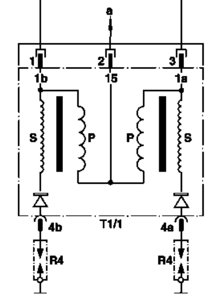 Das Massesignal vom Motorsteuergerät Me 2.8.1 im Leerlauf kann z.B. ein Rechtecksignal mit 8 Hz (4 V positiv) mit 2,8 ms Rechteckbreite sein. Das Rechtecksignalende bewirkt z.B. alle 125 msec die Selbstinduktion in der Sekundärspule, wobei dann z.B. über 6 KV Spannung entstehen. |